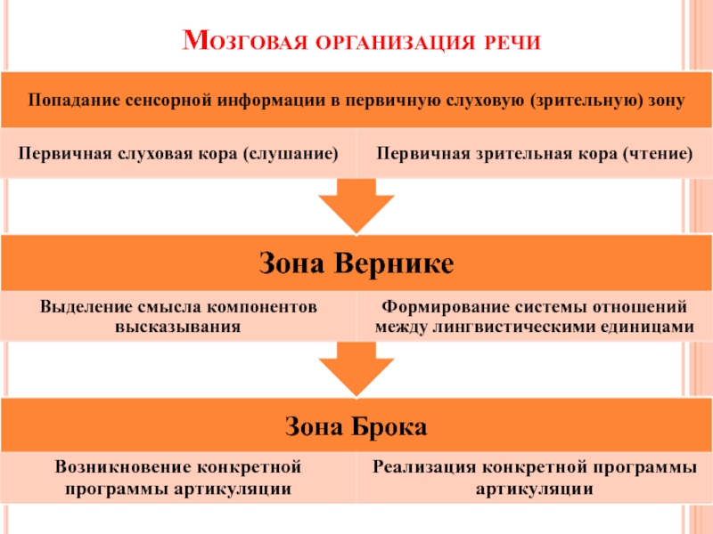 разобщенность, все речевые зоны объединены многочисленными внутрикорковыми связями