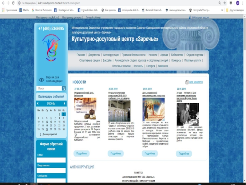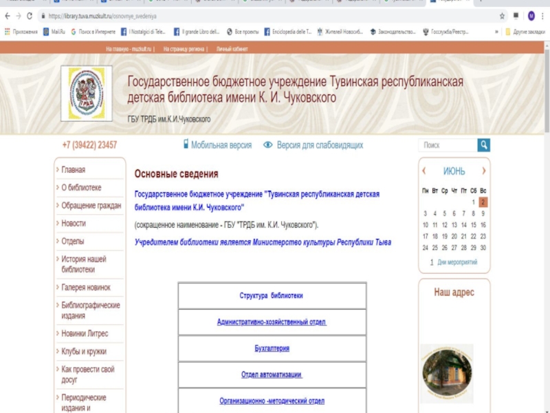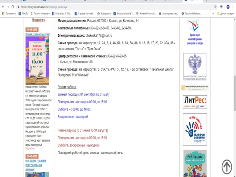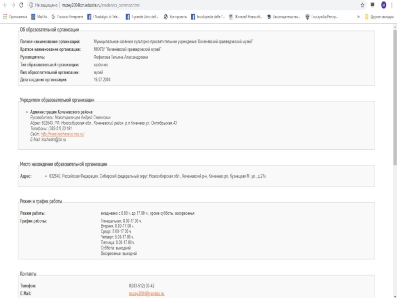 структура организации культуры, режим, график работы, контактные телефоны, адреса электронной почты;