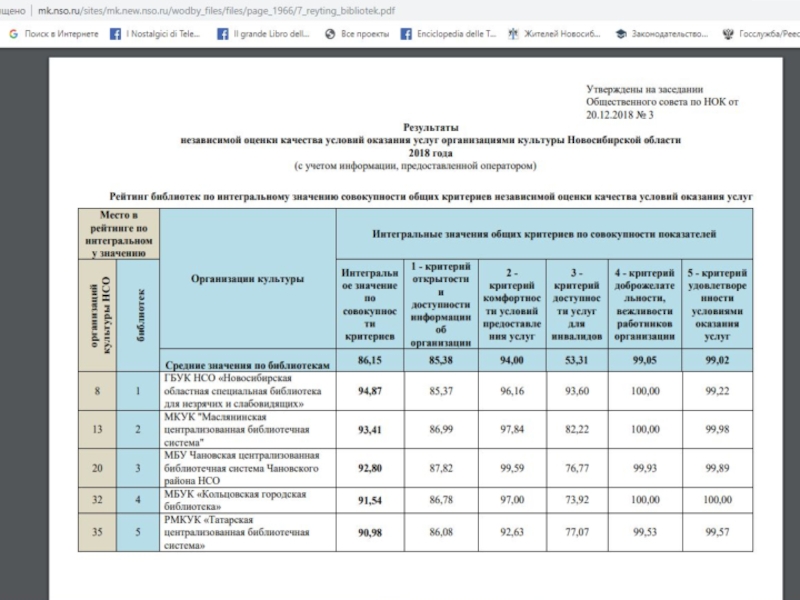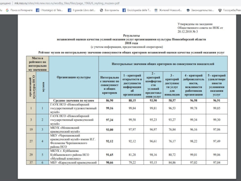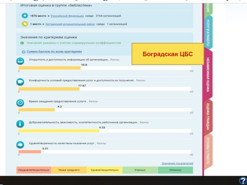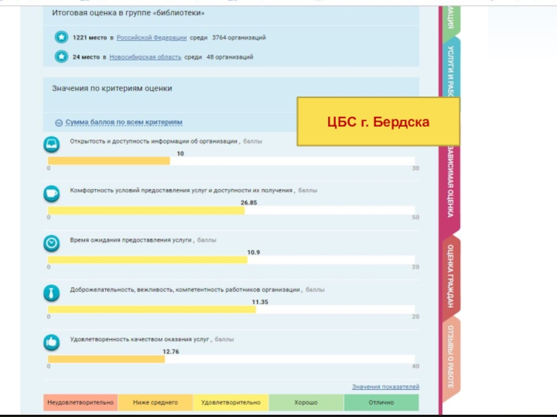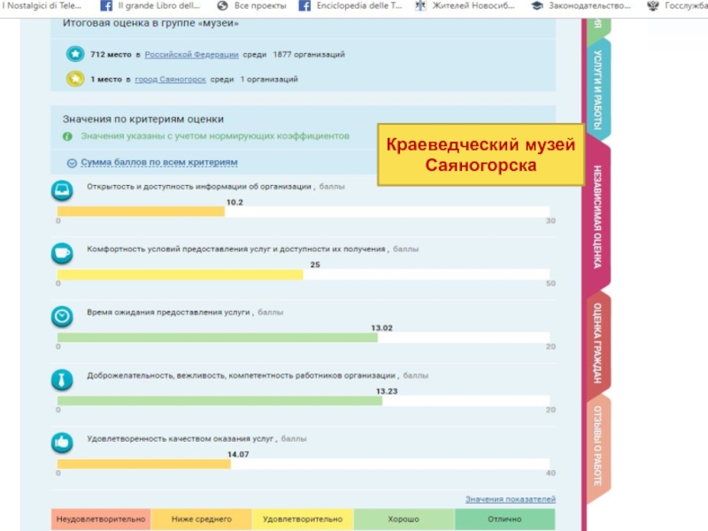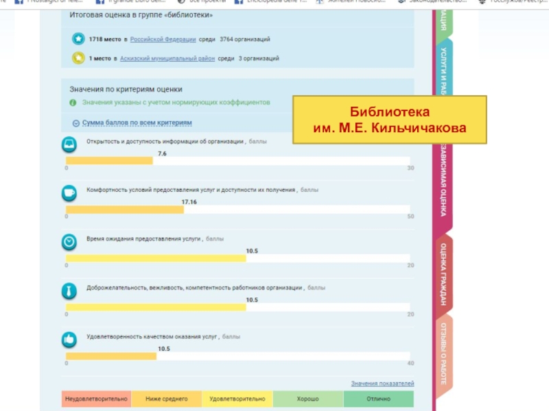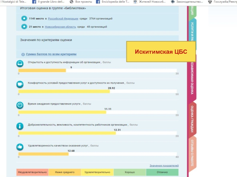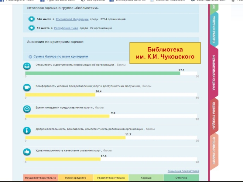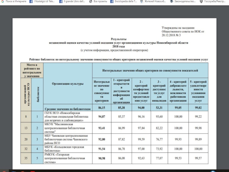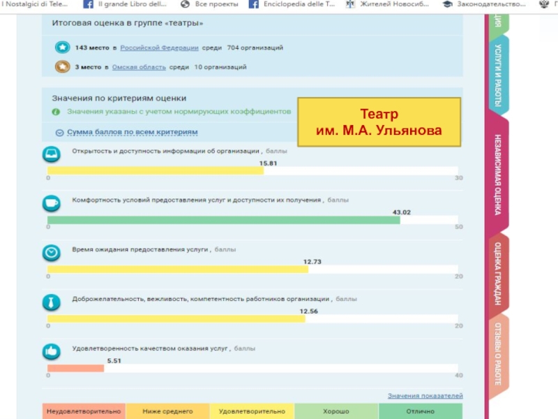 оценки качества оказания услуг организациями в сфере культуры, социального обслуживания, охраны здоровья и образования»