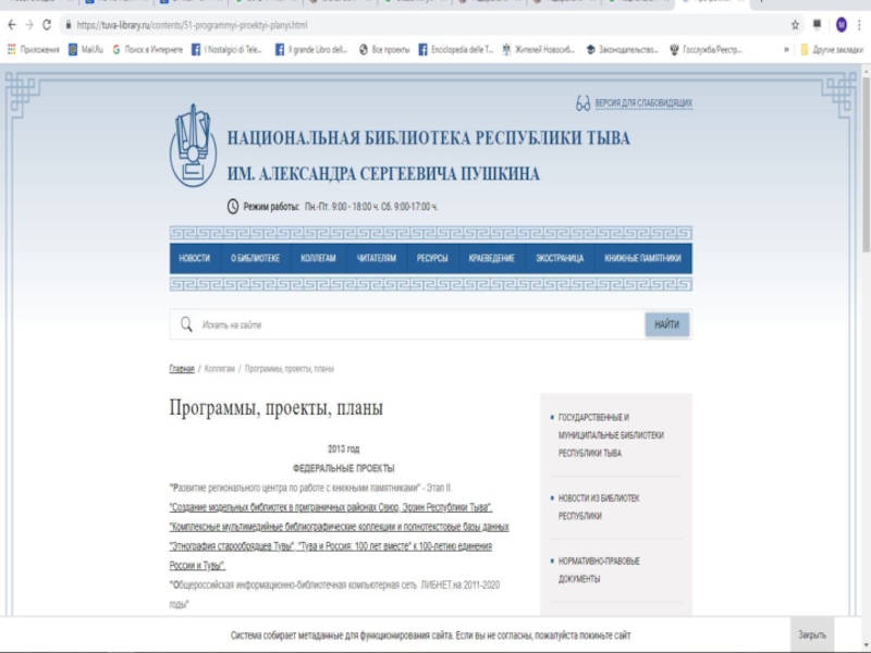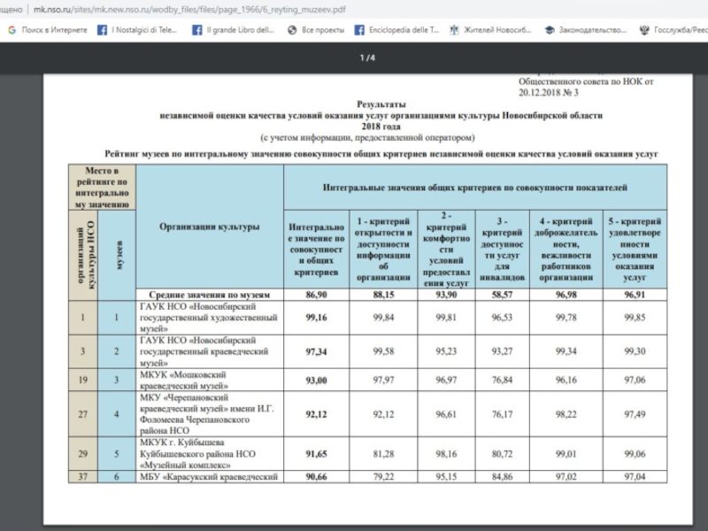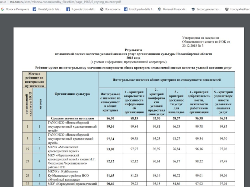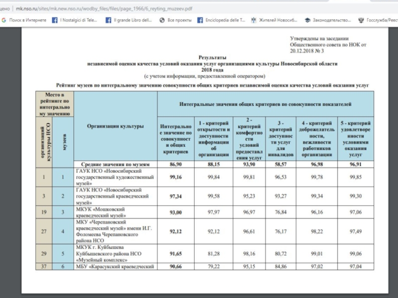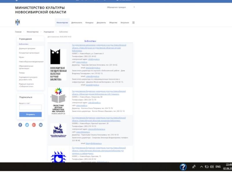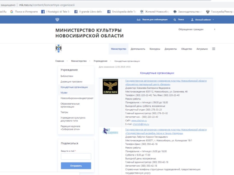 организаций культуры субъекта РФ с активной ссылкой на официальные сайты организаций культуры;