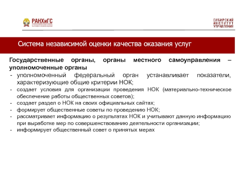 создает условия для организации проведения НОК (материально-техническое обеспечение работы общественных советов);