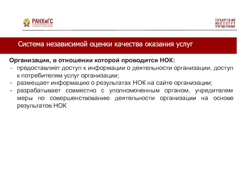 рассматривает информацию о результатах НОК и учитывают данную информацию при выработке мер по совершенствованию деятельности организации;