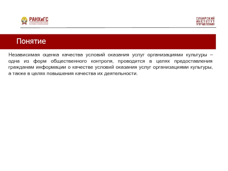 Слайд 1НЕЗАВИСИМАЯ ОЦЕНКА КАЧЕСТВА ОКАЗАНИЯ УСЛУГ УЧРЕЖДЕНИЯМИ КУЛЬТУРЫ