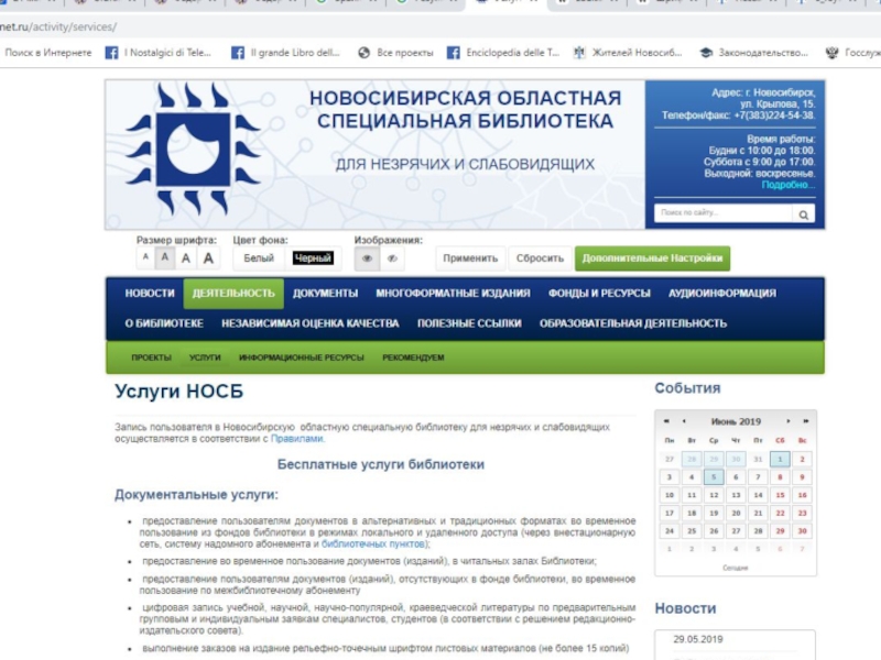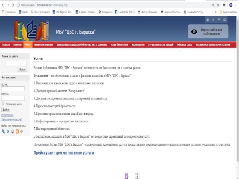 наличие альтернативной версии сайта для инвалидов по зрению;