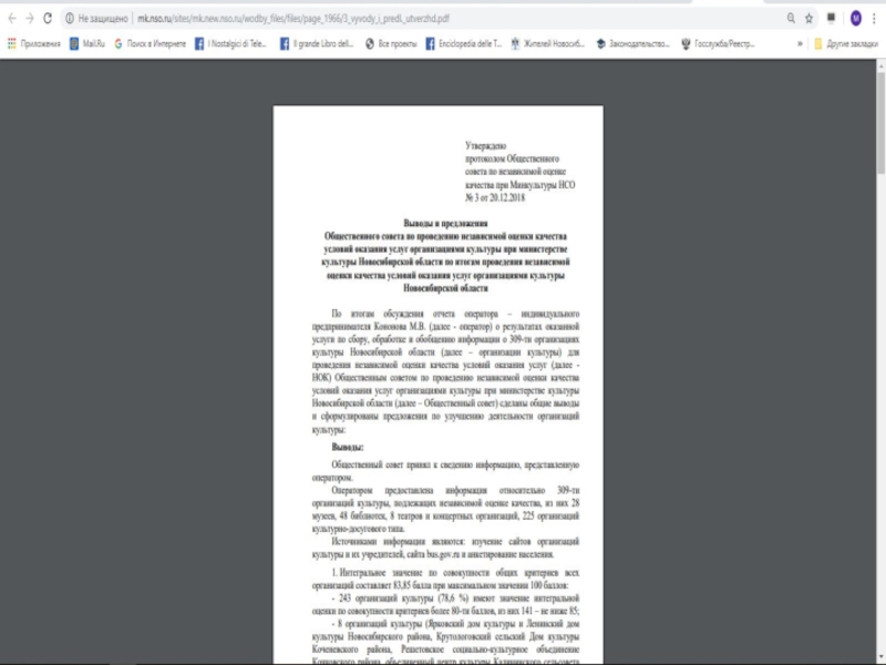 результаты независимой оценки качества оказания услуг организациями культуры,, а также предложения по улучшению качества их деятельности;