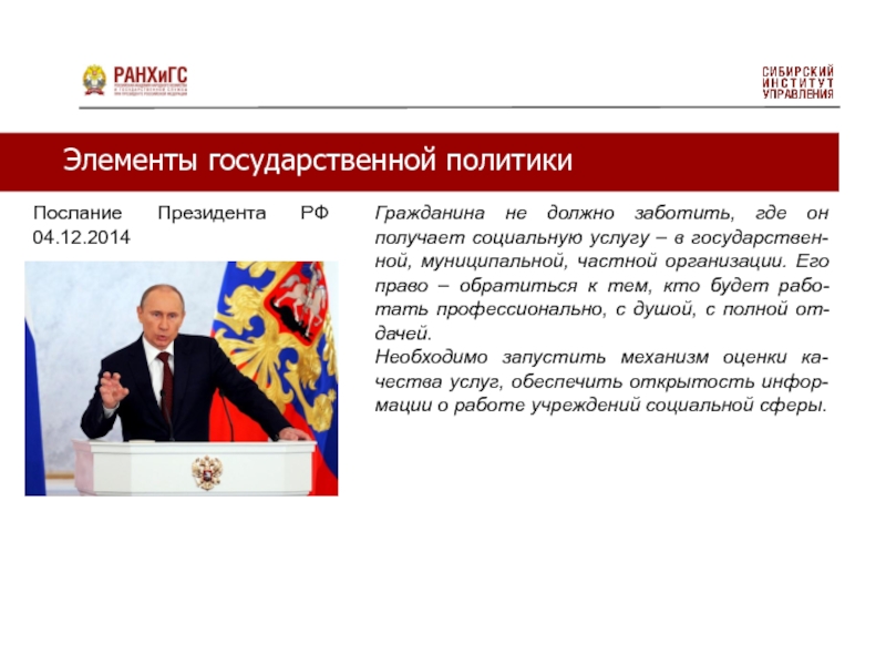 Необходимо запустить механизм оценки ка-чества услуг, обеспечить открытость инфор-мации о работе учреждений социальной сферы.