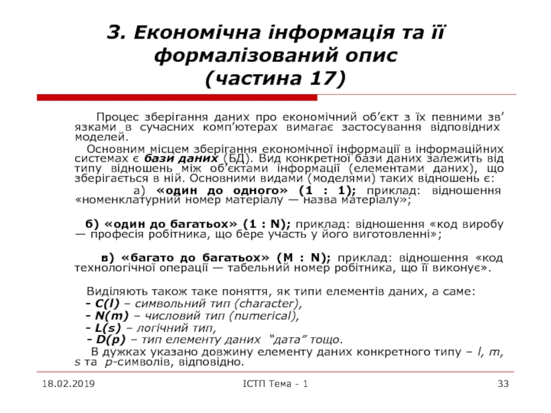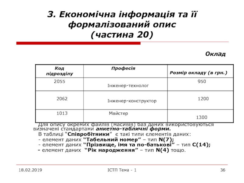 - елемент даних “Рік народження” – тип N(4) тощо.