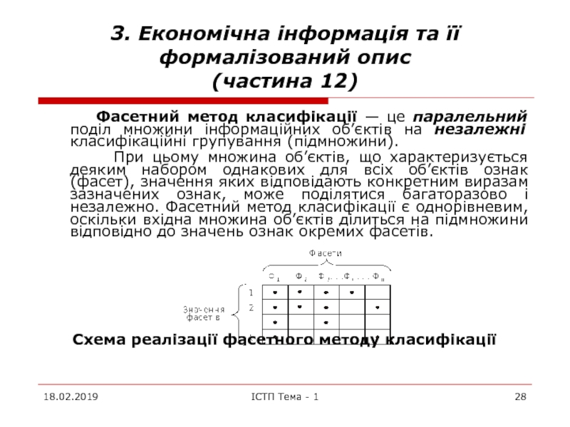множини інформаційних об’єктів на незалежні класифікаційні групування (підмножини).