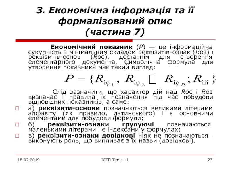 б) реквізити-ознаки групуючі позначаються маленькими літерами і є індексами у формулах;