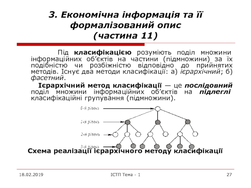 Під класифікацією розуміють поділ множини інформаційних об’єктів