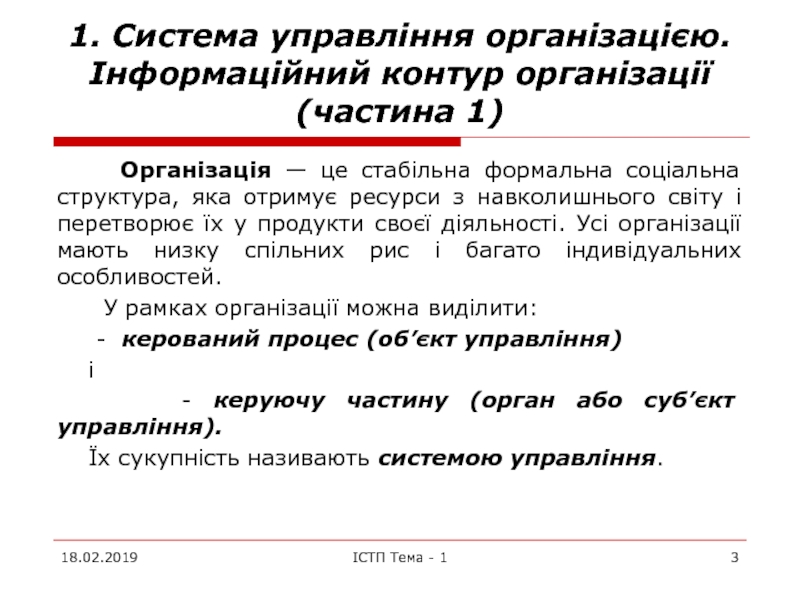 Слайд 31. Система управління організацією. Інформаційний контур організації (частина 1)