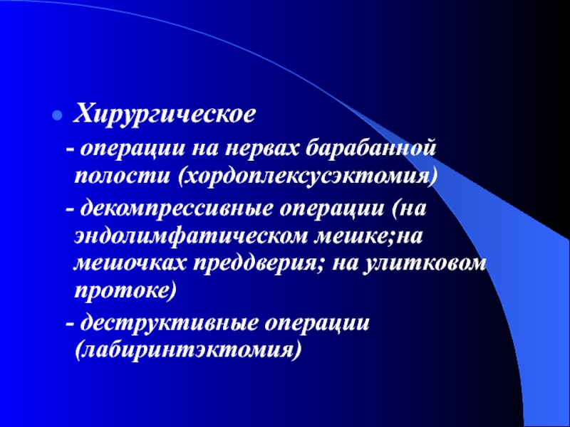- операции на нервах барабанной полости (хордоплексусэктомия)
