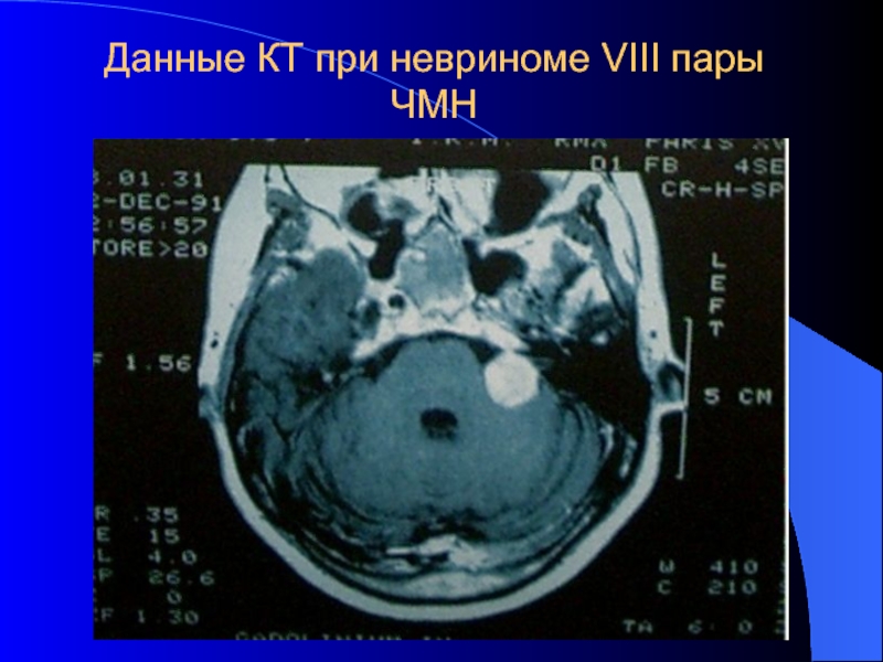 Слайд 17Данные КТ при невриноме VIII пары ЧМН