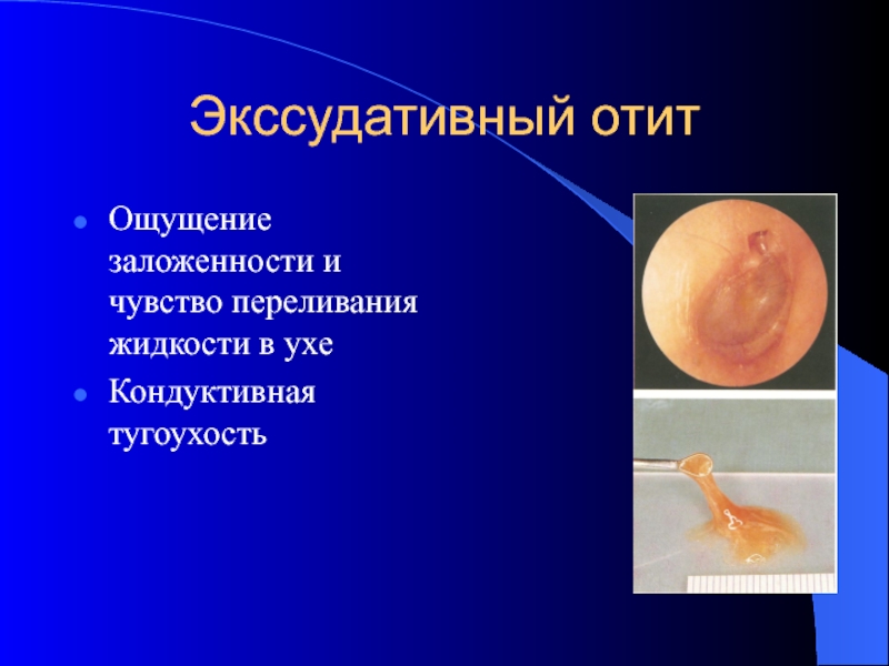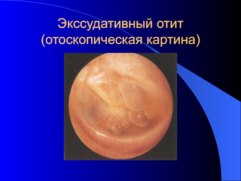 Слайд 6Экссудативный отит (отоскопическая картина)