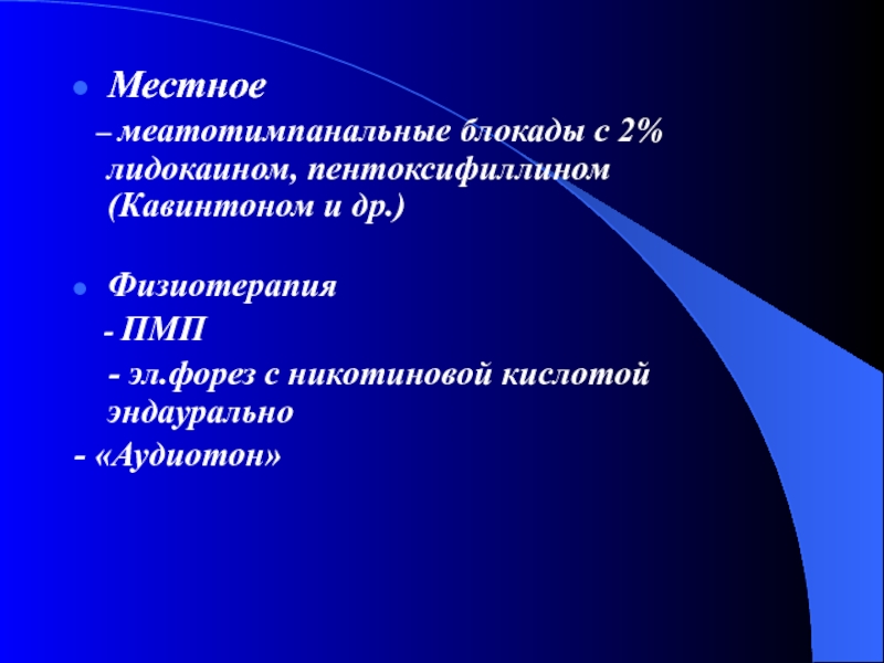 – меатотимпанальные блокады с 2% лидокаином, пентоксифиллином (Кавинтоном