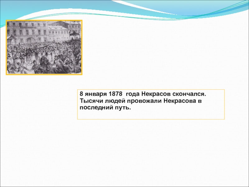 Слайд 58 января 1878 года Некрасов скончался. Тысячи людей провожали Некрасова