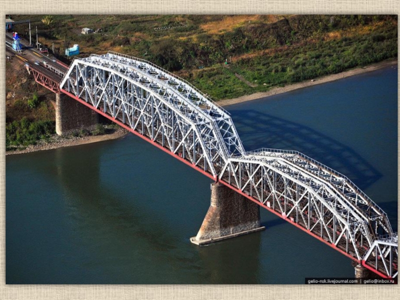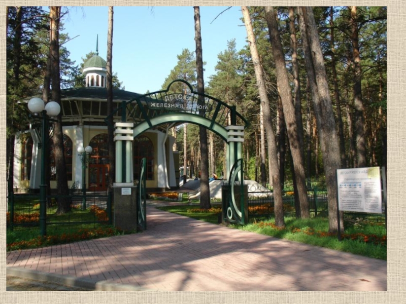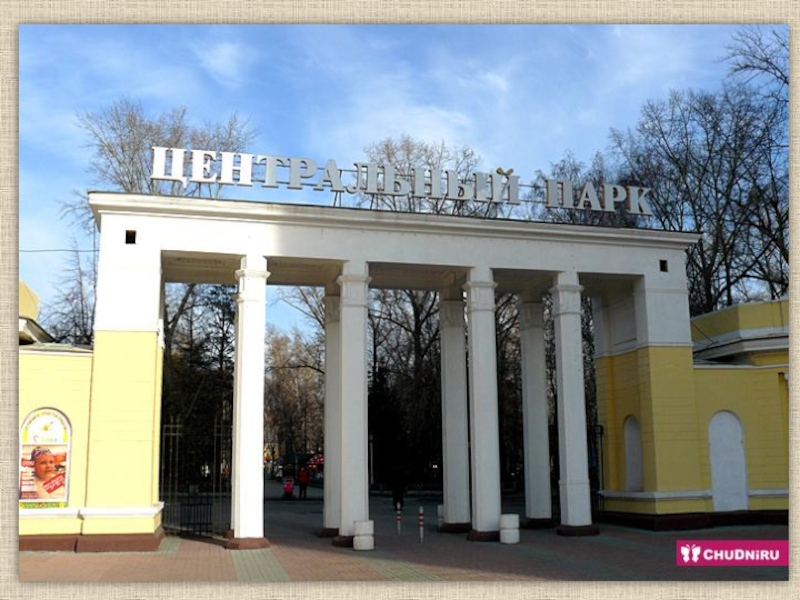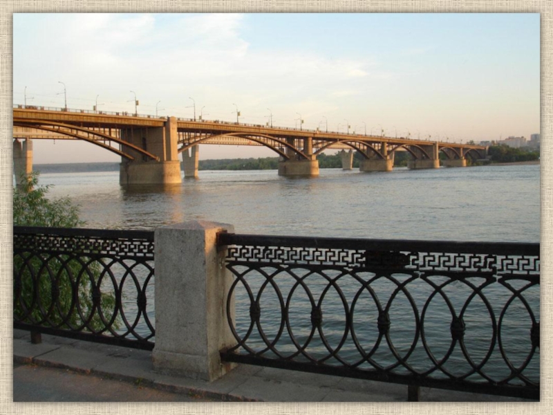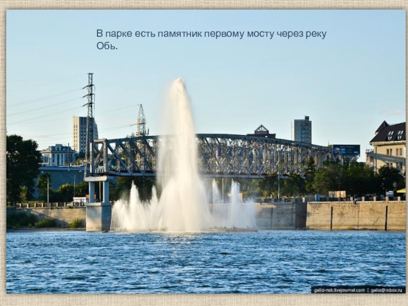 Слайд 38В парке есть памятник первому мосту через реку Обь.