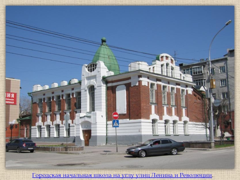 Слайд 19Городская начальная школа на углу улиц Ленина и Революции.