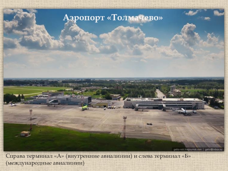 Справа терминал «А» (внутренние авиалинии) и слева терминал «Б» (международные авиалинии)Аэропорт «Толмачево»
