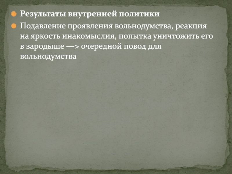 Подавление проявления вольнодумства, реакция на яркость инакомыслия, попытка