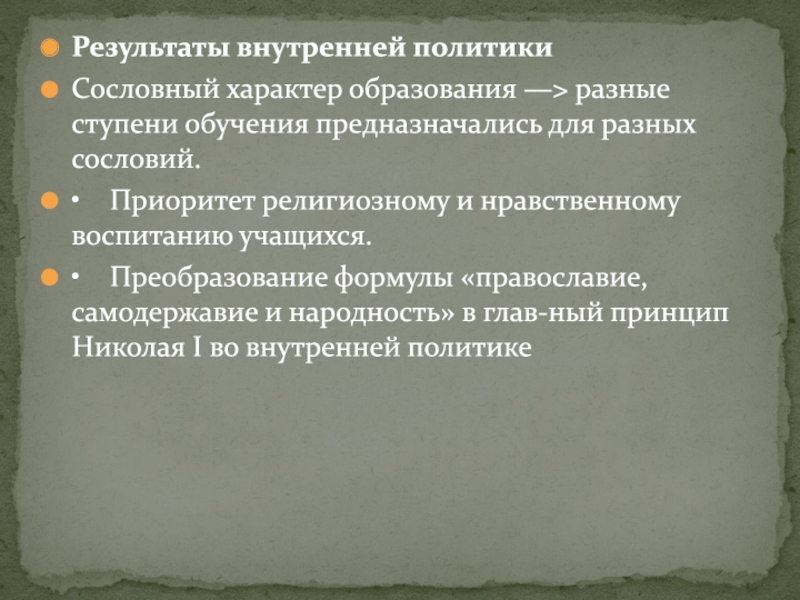 формулы «православие, самодержавие и народность» в глав-ный принцип Николая I во внутренней политике