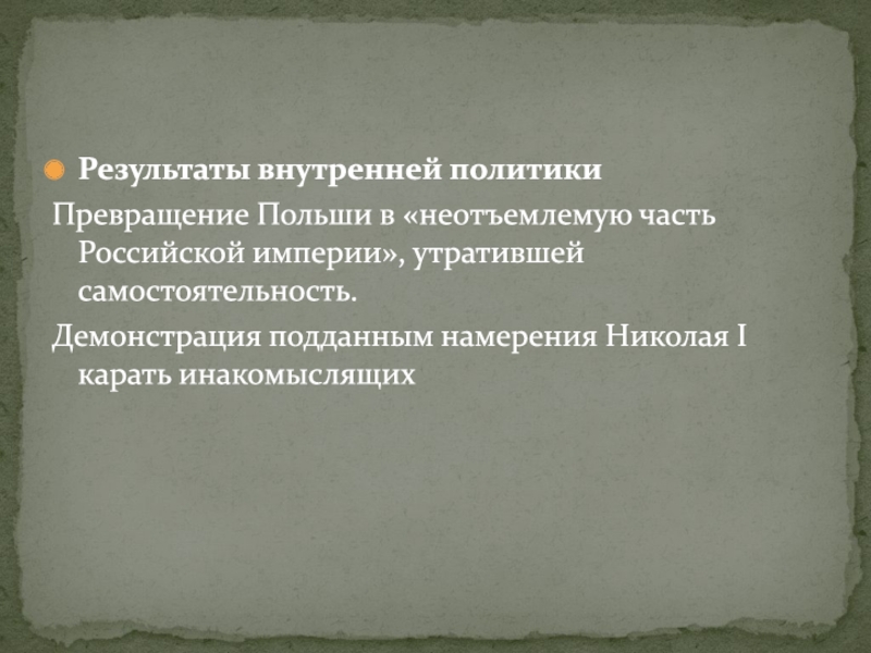 Превращение Польши в «неотъемлемую часть Российской империи», утратившей