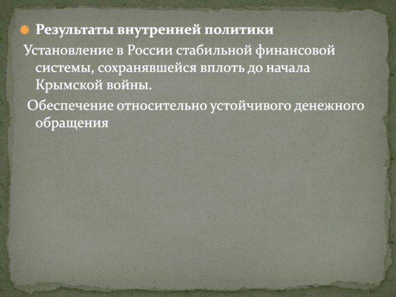 Установление в России стабильной финансовой системы, сохранявшейся вплоть