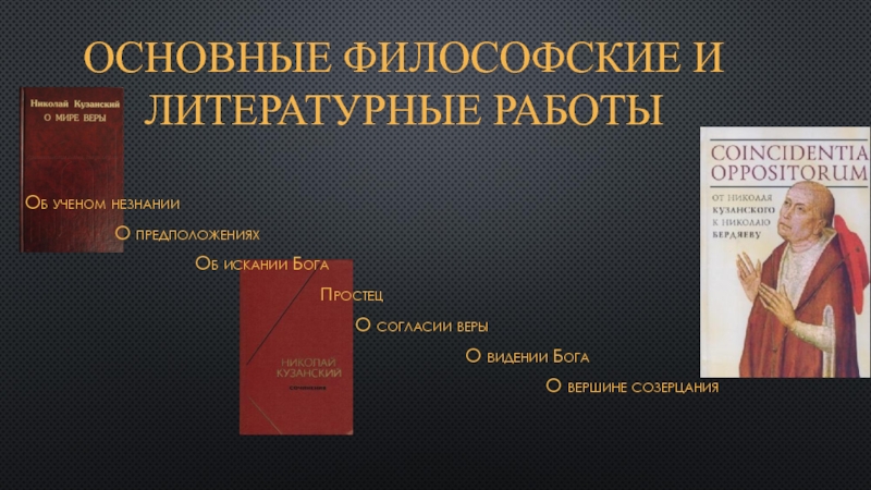 Философское решение Кузанским главной проблемы - отношения бога и мира - является теоцентрическим, но в то же время содержит элементы и тенденции, отличающиеся от средневекового католического богословия.