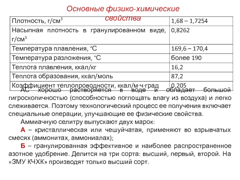 Б – гранулированная эффективное и наиболее распространенное азотное удобрение. Делится на три сорта: высший, первый, второй. На «ЗМУ КЧХК» производят только высший сорт.