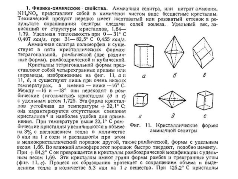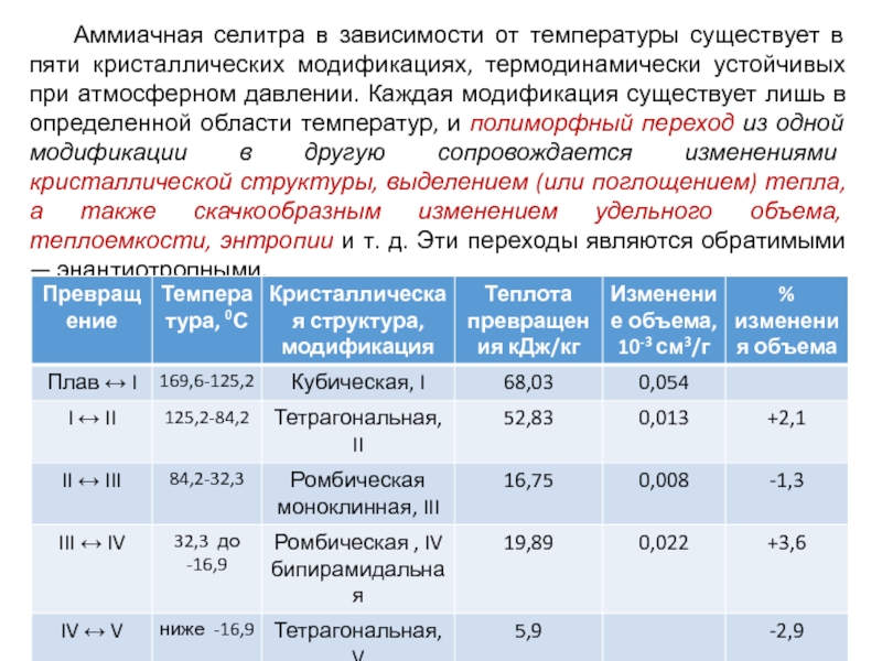 Слайд 4Аммиачная селитра в зависимости от температуры существует в пяти кристаллических