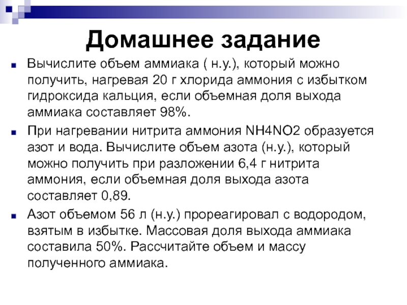 Вычислите объем аммиака ( н.у.), который можно получить, нагревая