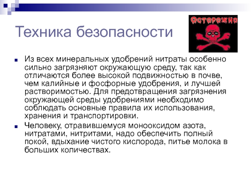 Из всех минеральных удобрений нитраты особенно сильно загрязняют окружающую