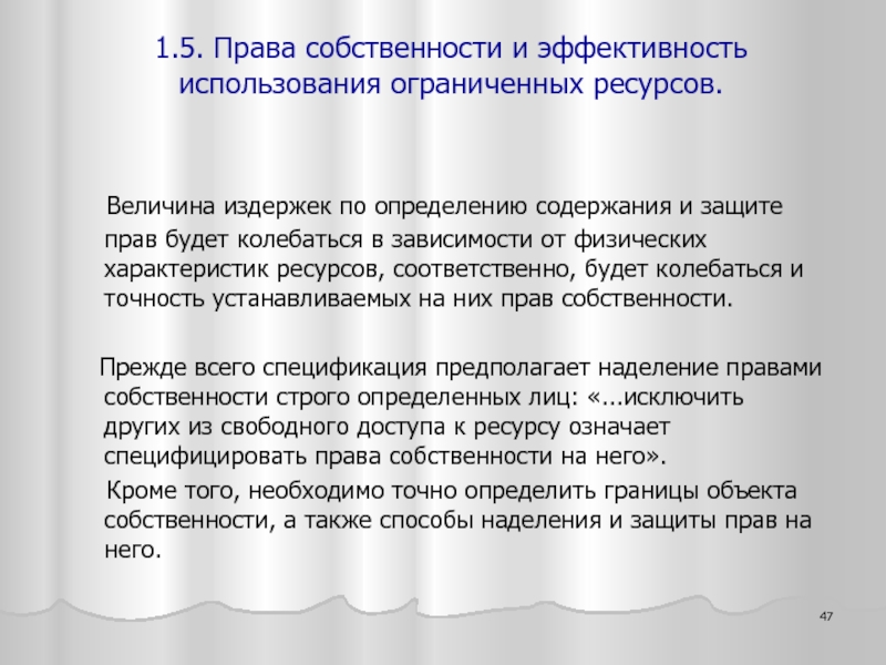 Слайд 471.5. Права собственности и эффективность использования ограниченных ресурсов.