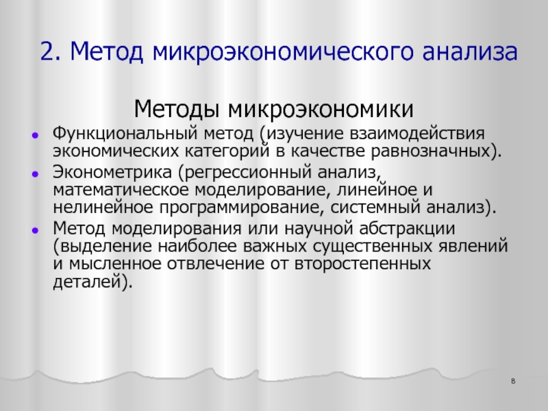 Функциональный метод (изучение взаимодействия экономических категорий в качестве равнозначных).