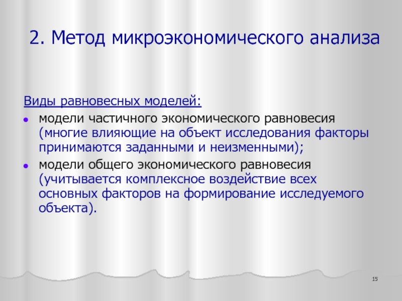 равновесные модели (используются при исследовании взаимоотношений между экономическими агентами).