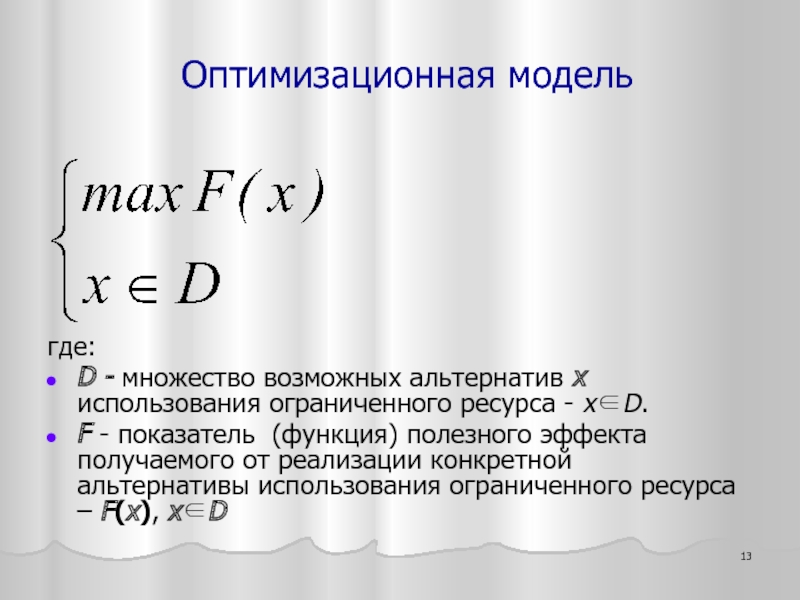 D - множество возможных альтернатив x использования ограниченного ресурса