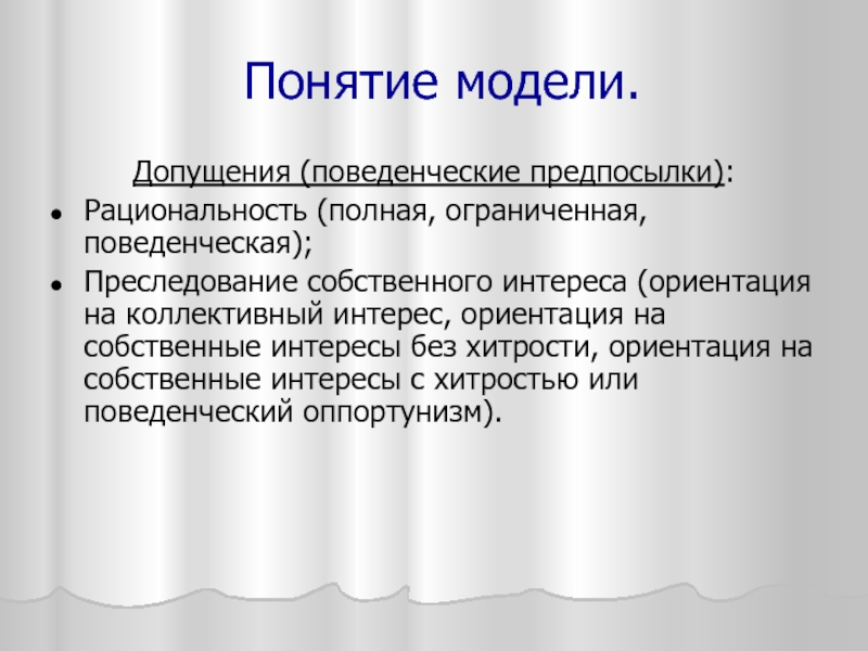 собственные интересы с хитростью или поведенческий оппортунизм).