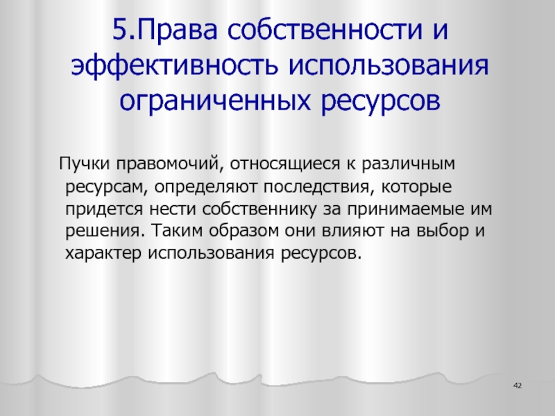 Слайд 431.5. Права собственности и эффективность использования ограниченных ресурсов
