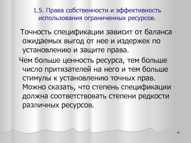 Слайд 461.5. Права собственности и эффективность использования ограниченных ресурсов.