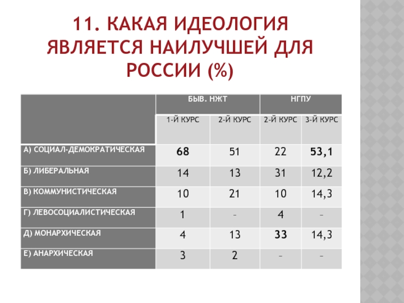 Слайд 1311. Какая идеология является наилучшей для России (%)