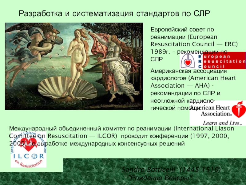 Международный объединенный комитет по реанимации (International Liason Comittee on Resuscitation — ILCOR) проводит конференции (1997, 2000, 2005) по выработке международных консенсусных решений