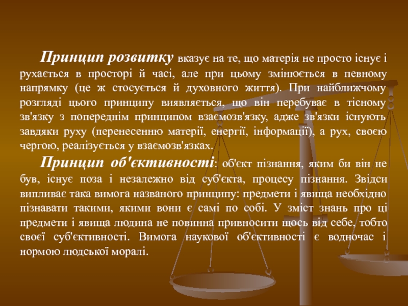 Слайд 31 Принцип розвитку вказує на те, що матерія не просто існує