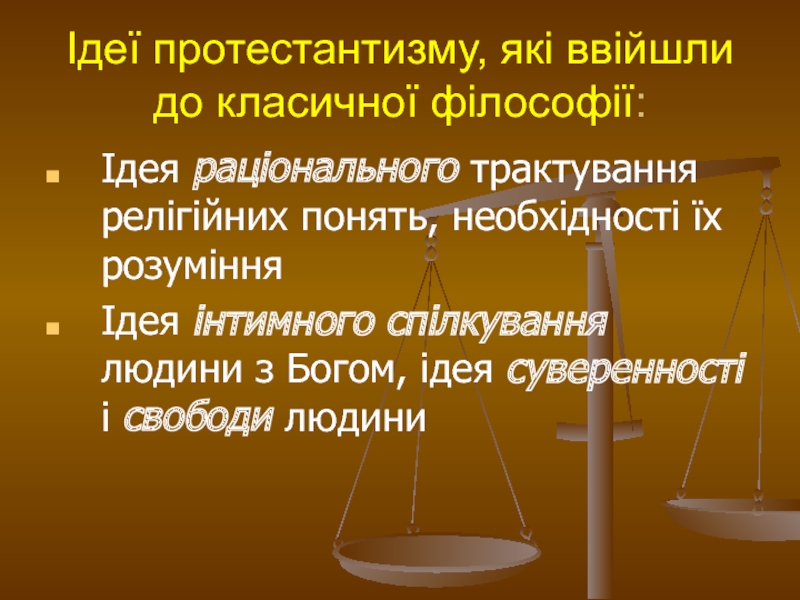 Слайд 4Ідеї протестантизму, які ввійшли до класичної філософії:
