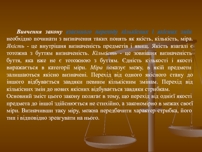 Слайд 36 Вивчення закону взаємного переходу кількісних і якісних змін необхідно починати