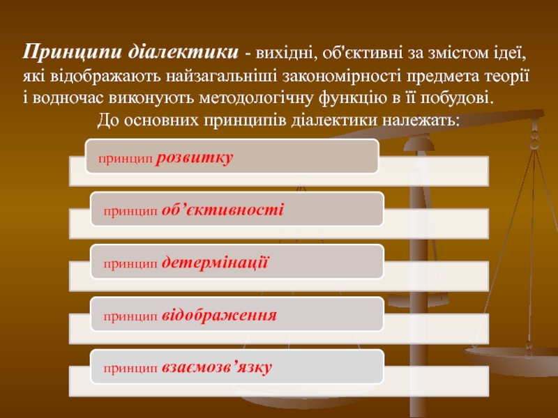 Слайд 30Принципи діалектики - вихідні, об'єктивні за змістом ідеї, які відображають