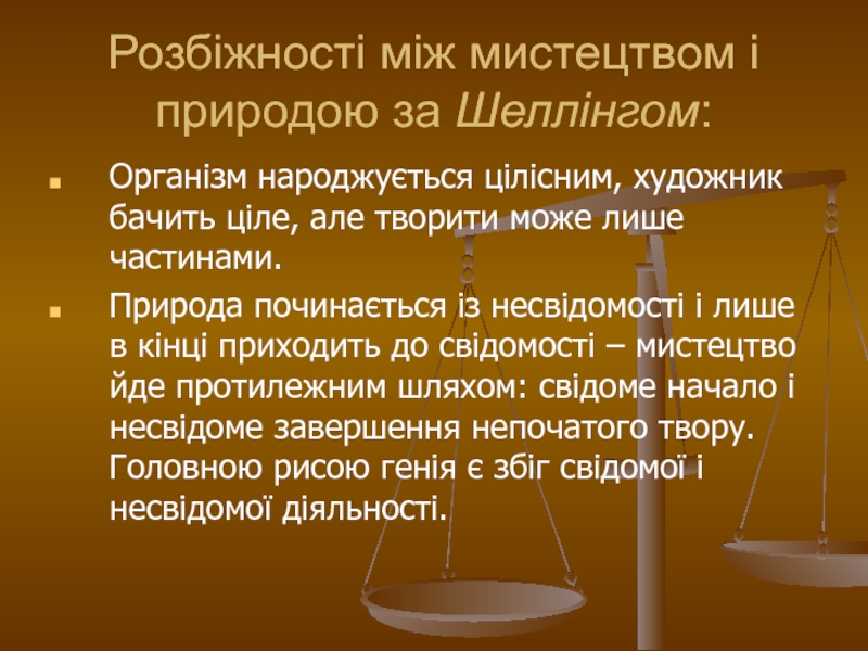 Слайд 12Розбіжності між мистецтвом і природою за Шеллінгом: