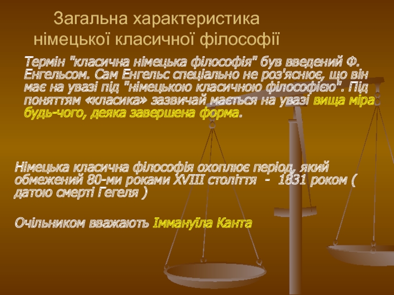 Німецька класична філософія охоплює період, який обмежений 80-ми роками XVIII століття - 1831 роком ( датою смерті Гегеля )