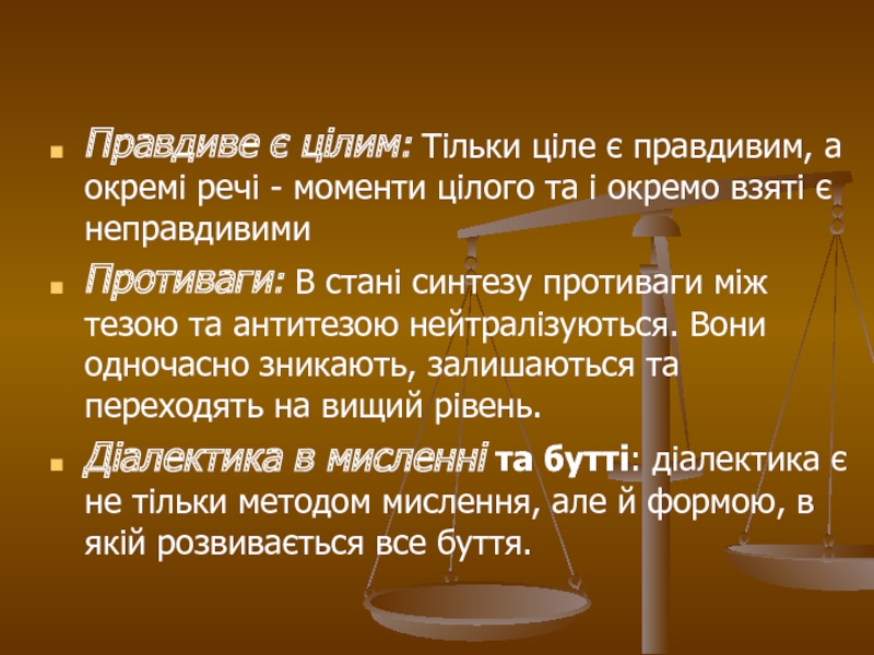 Слайд 25Правдиве є цілим: Тільки ціле є правдивим, а окремі речі -