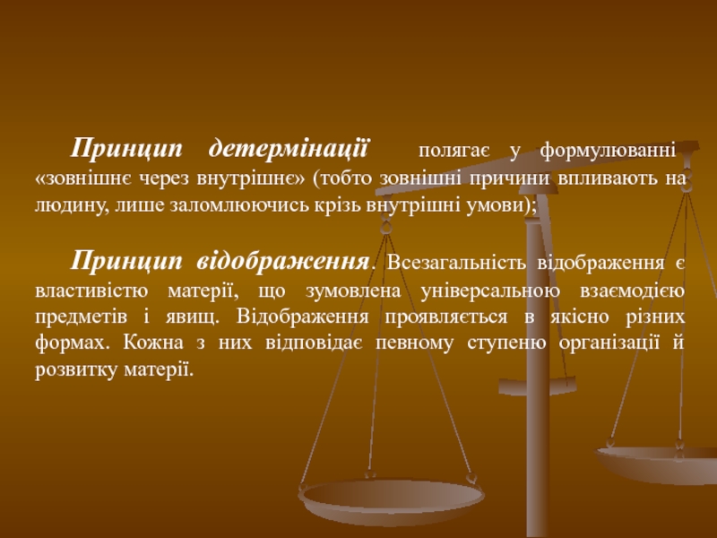Слайд 32 Принцип детермінації полягає у формулюванні «зовнішнє через внутрішнє» (тобто зовнішні
