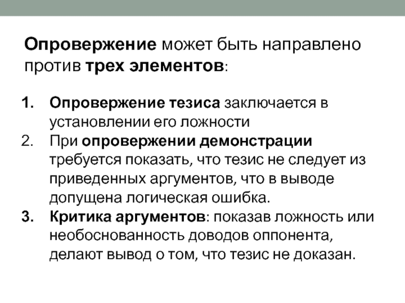 Слайд 31Опровержение может быть направлено против трех элементов: